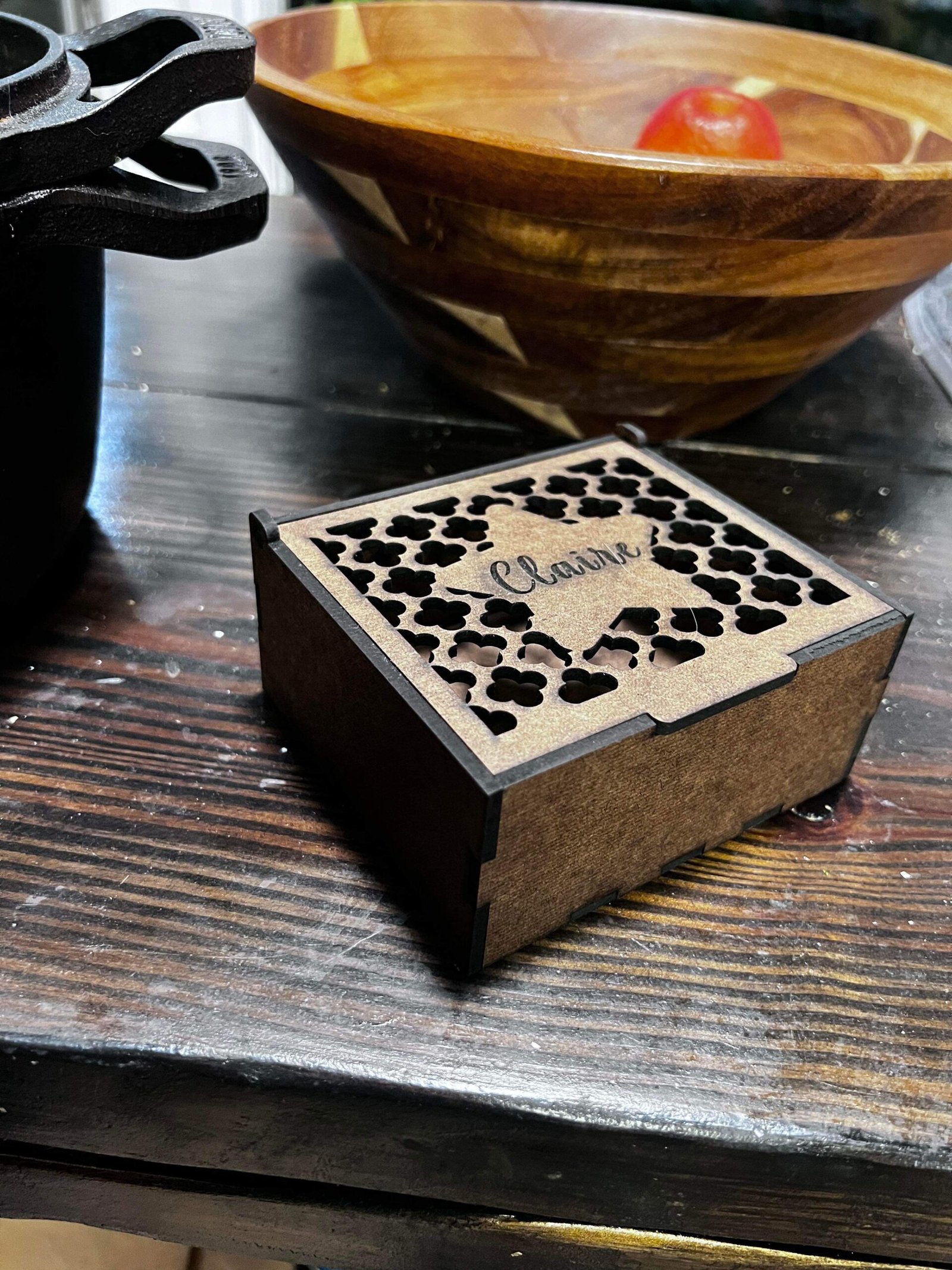We’re Michelle & Wayne — a husband-and-wife duo creating handcrafted wedding keepsakes with laser cutting, embroidery, vinyl, and 3D printing.
